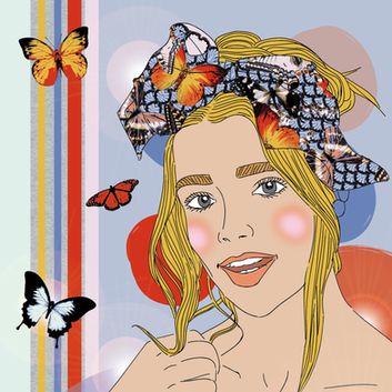 Schmetterlinge sind nach ihrer Metamorphose von einer Raupe zum Falter wie neu geboren. Wie ein Buddha (übersetzt "der Erwachte") sind sie eine neue reifere Form ihrer Selbst. Unbeschwert im Hier und Jetzt fliegen sie hellwach und lebendig durch die Lüfte. Genau diesen Moment der Erwachung und der Leichtigkeit wollte ich in dieser Print-Serie sichtbar machen. Deshalb die Wahl der hellen Farben, den luftigen Kleidungsstücken & ganz vielen Schmetterlingen.
